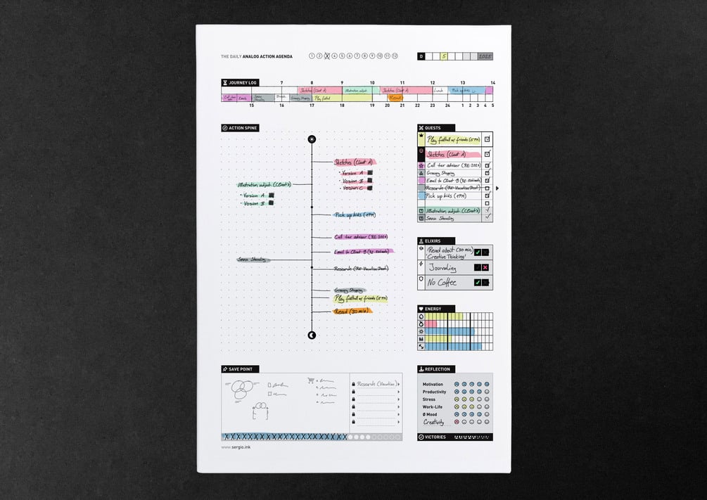 Boost your productivity and level up your focus with this analog, distraction-free, gamified planner—all on a single page.